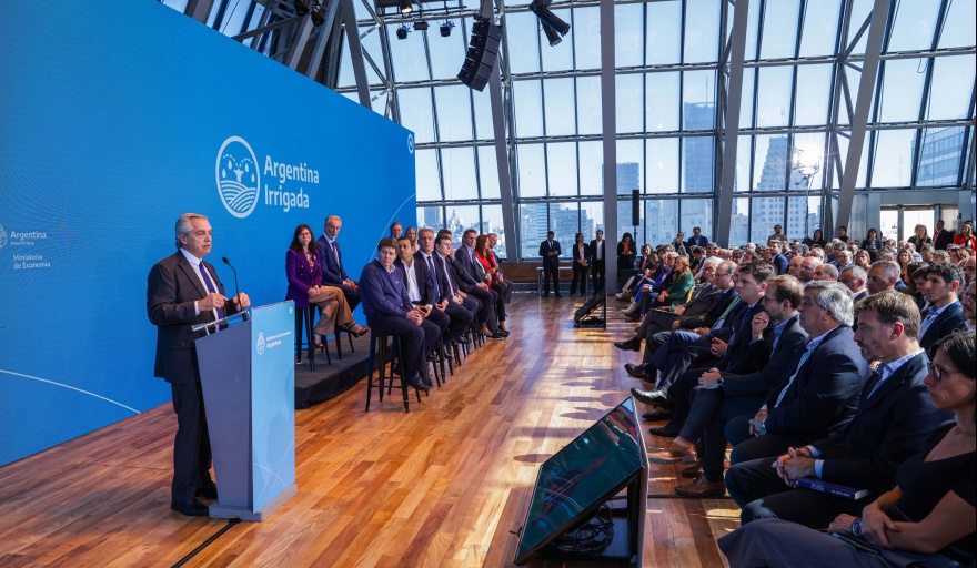 "El objetivo es incorporar "1,9 millones de hectáreas a la superficie irrigada, una inversión pública de US$ 2.066,7 millones para riego tecnificado que representarán 95 proyectos de infraestructura hídrica en 20 provincias", informaron en el Ministerio de Economía.
