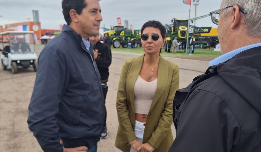 Mayra Mendoza llegó manejando su propio auto, recorrió las principales calles del predio, dialogó con productores y redondeó una muy buena visita. Además de Wado, estuvo acompañada por los intendentes Iván Villagrán (Carmen de Areco) y Waldemar Giordano (Colón).